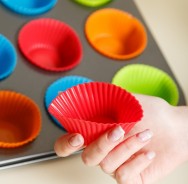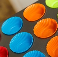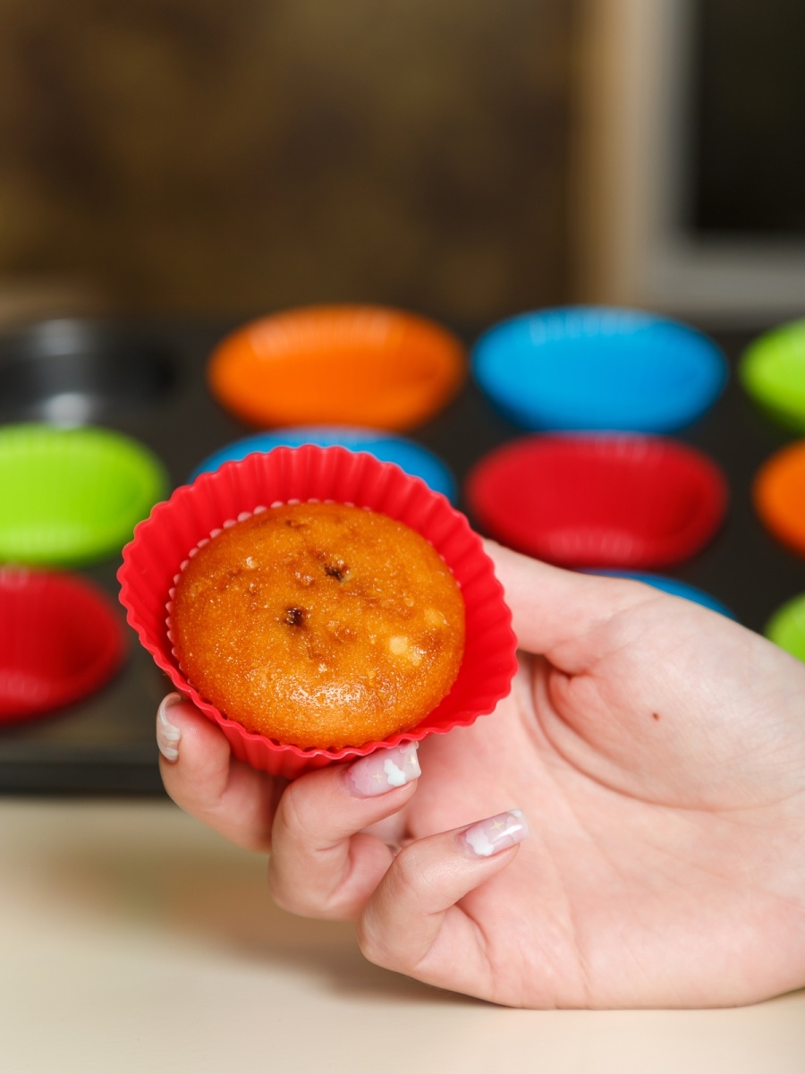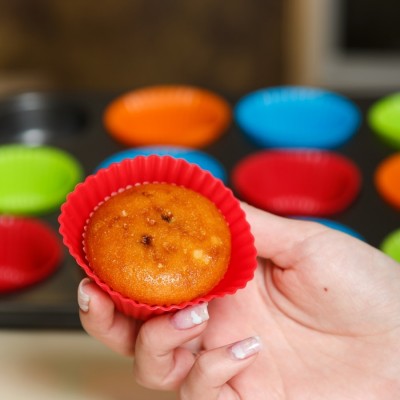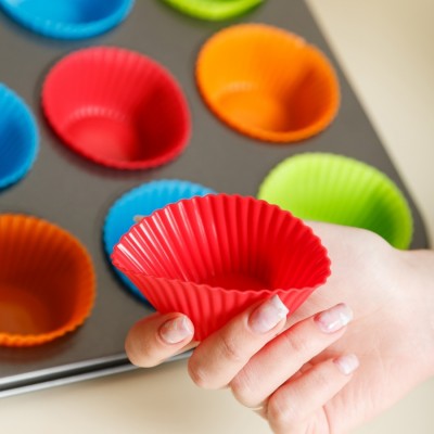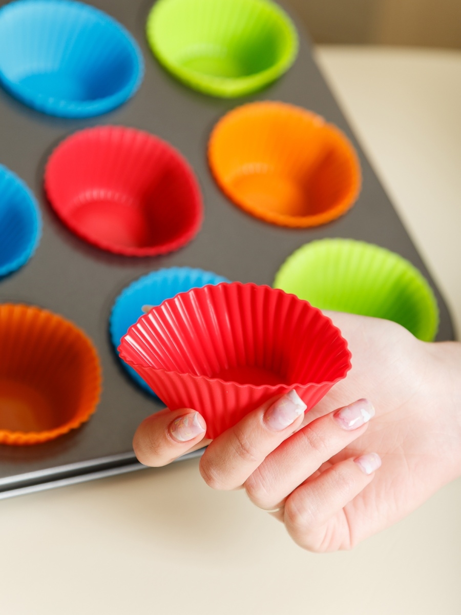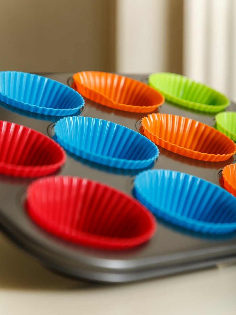 Set tava de copt 12 briose si 12 forme din silicon, 35 x 26 cm